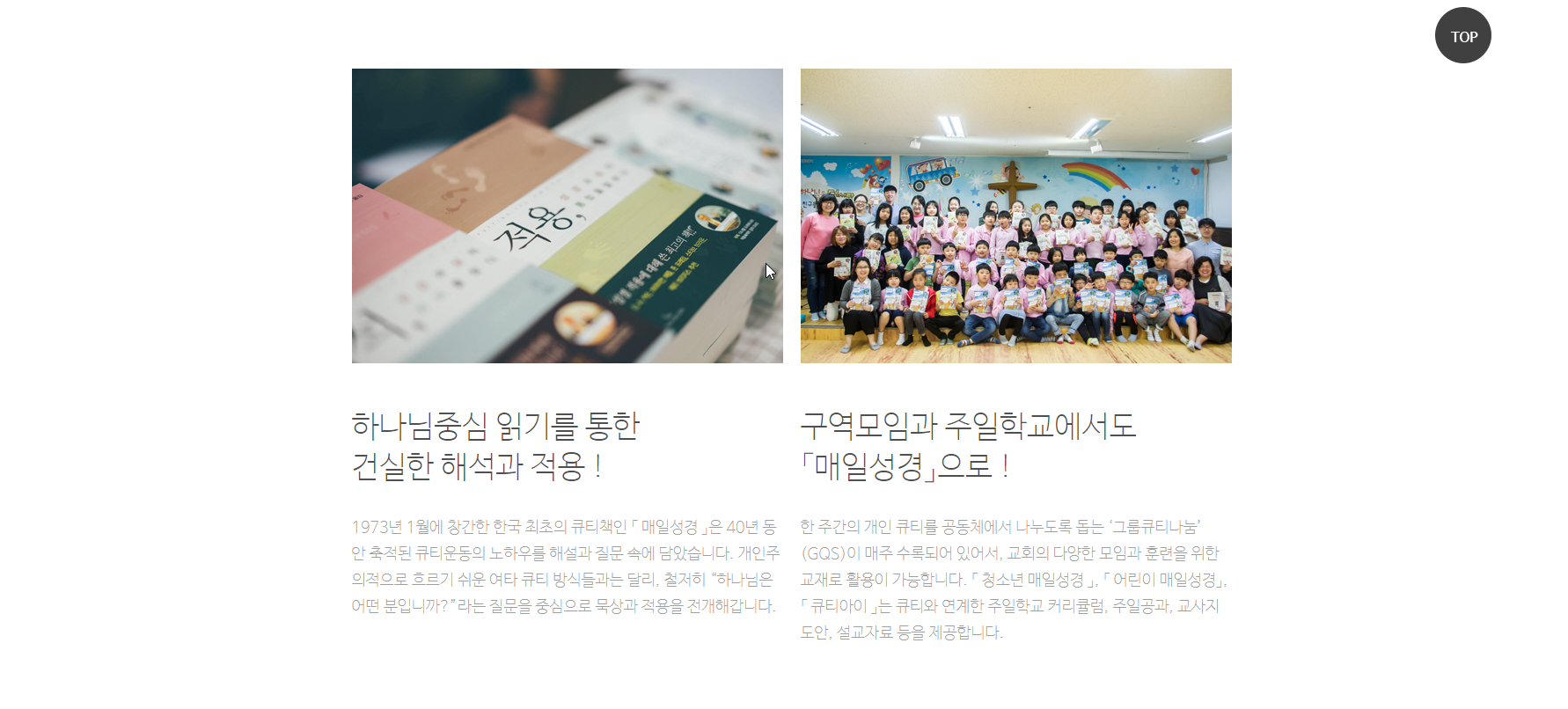 하나님중심 읽기를 통한 건실한 해석과 적용! 구역모임과 주일학교에서도 매일성경으로 공부한다고 하네요.
