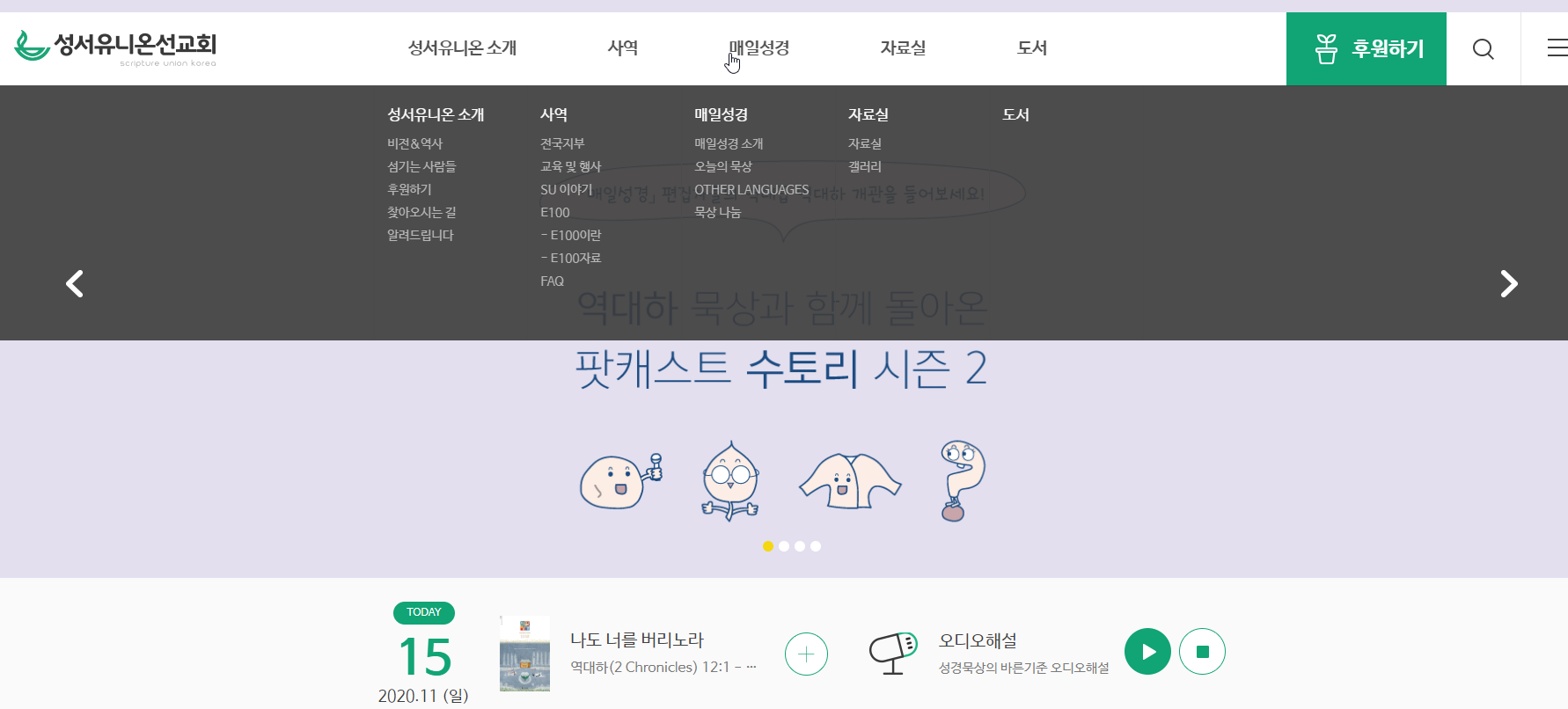 성서유니온선교회 홈페이지에 가시게 되면 매일성경을 볼 수 있는데요. 좋은 말씀들이 많습니다.