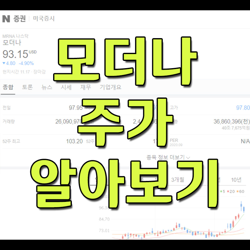 현재 모더나 주가는 93.15달러입니다. 거래량, 대금, 시가, 고가, 저가, 시가총액, 업종 확인하시고요. 모더나의 업종은 생명과학 및 메디컬 리서치로 되어있네요.