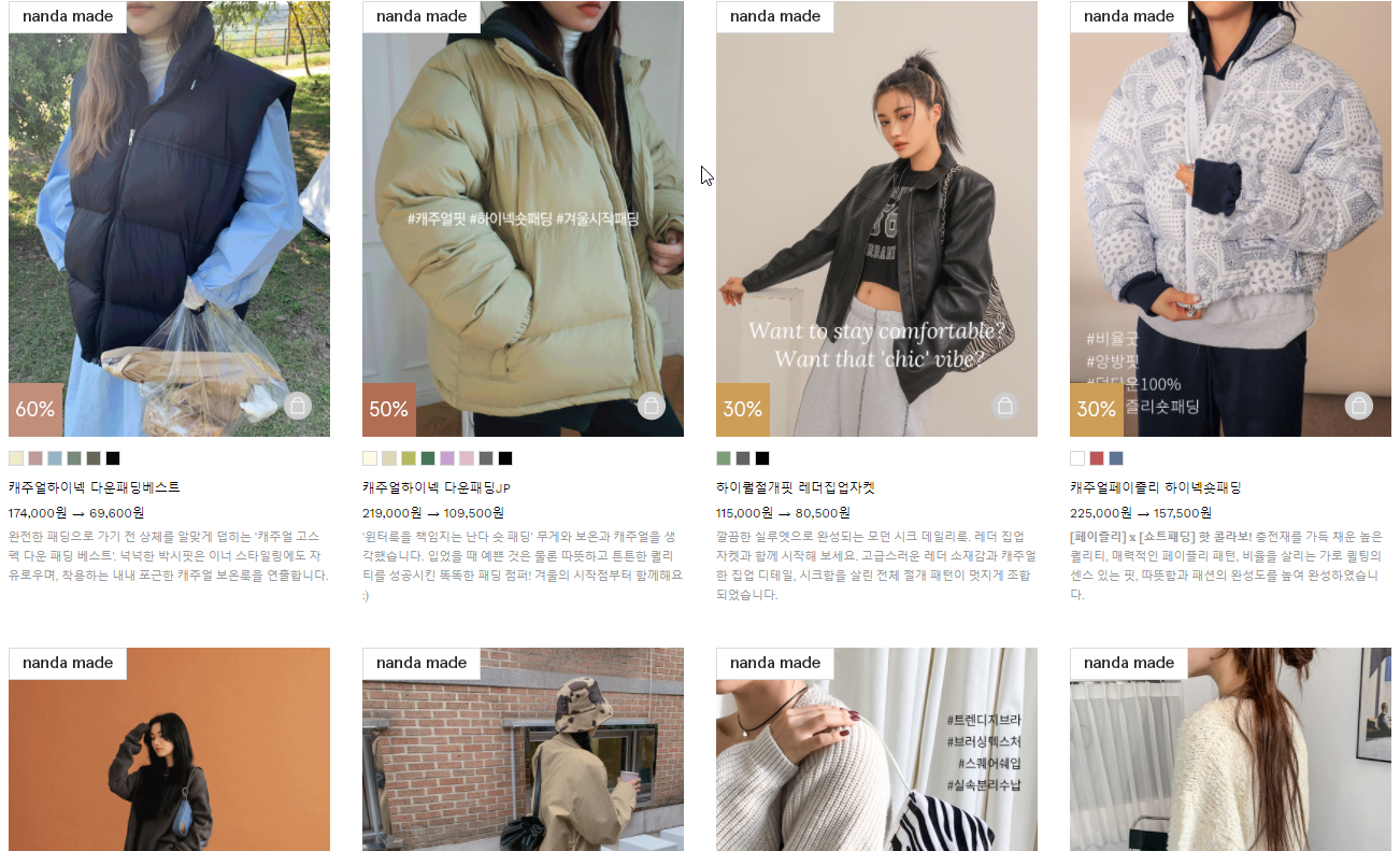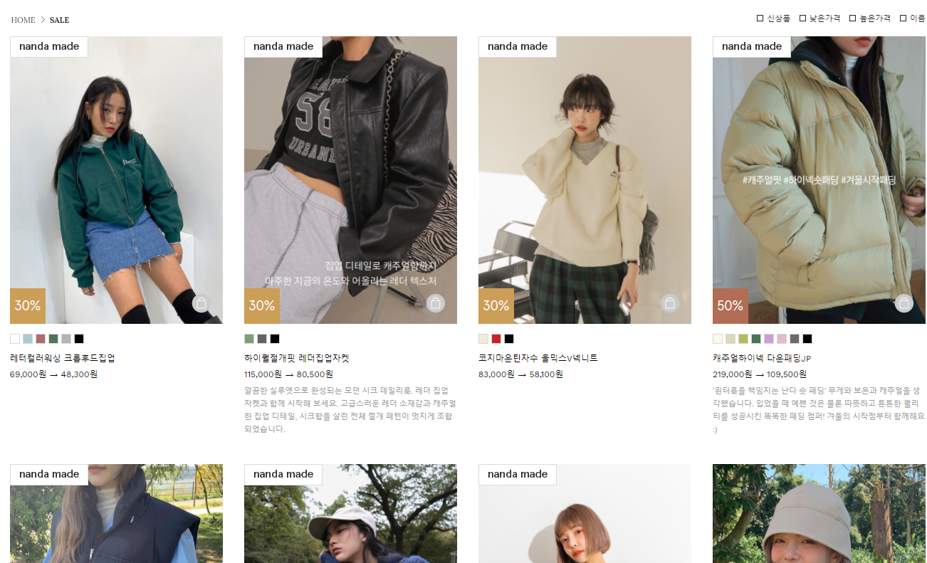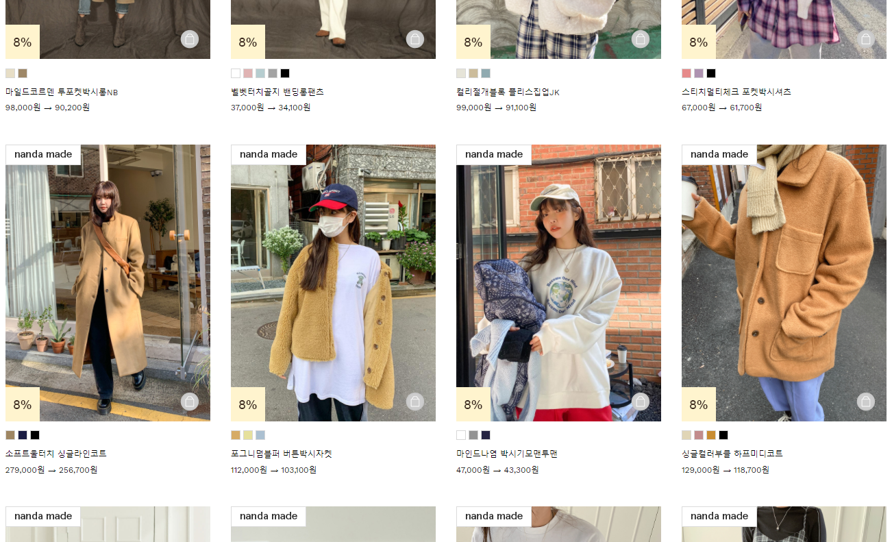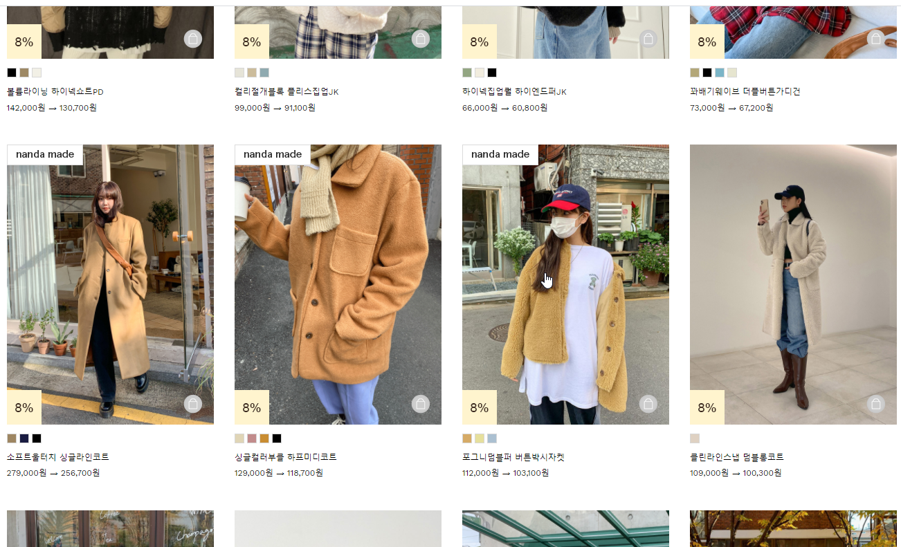 여성 의류 쇼핑몰 스타일난다에서는 난다메이드 제품들도 살펴볼 수 있는데요. 하프미디코트, 버튼박시자켓, 싱글라인코트 등 색상 예쁜 아우터들이 많네요!!