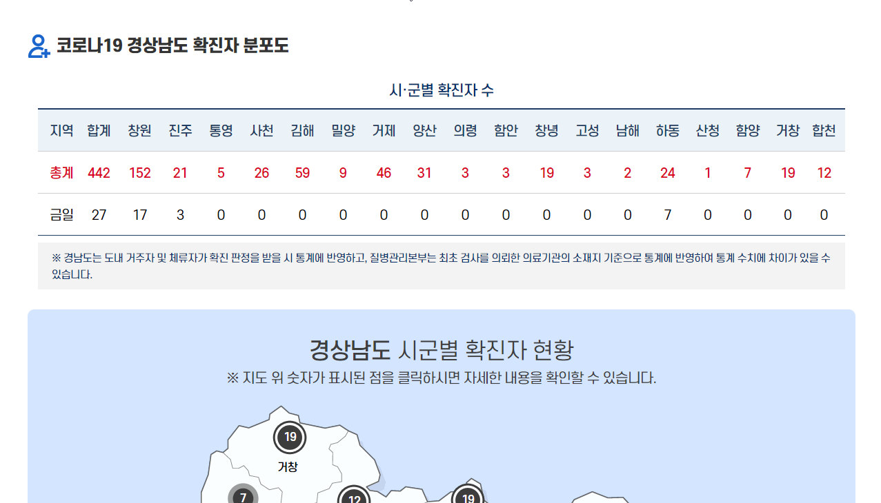 아래 바로가기를 클릭하시면 경남 코로나 확진자 현황뿐만 아니라 동선도 확인할 수 있어요. 참고 바랍니다.