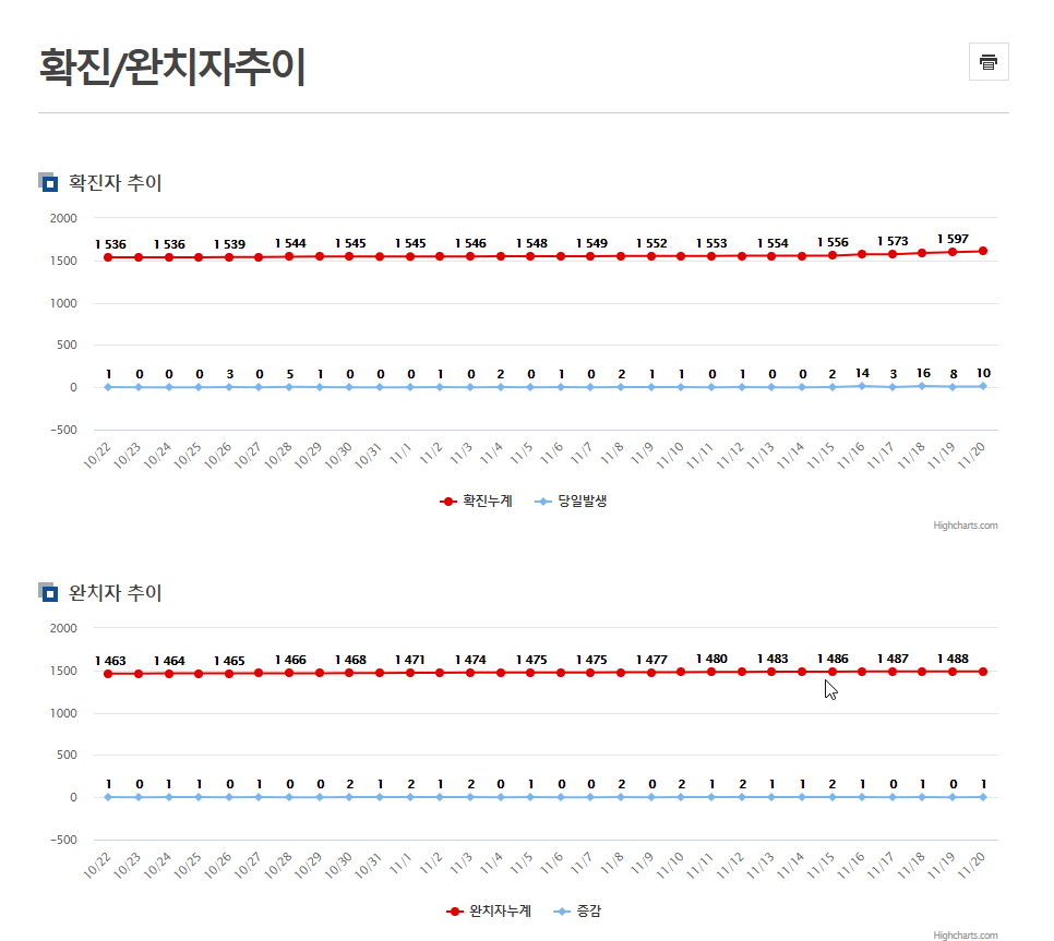 확진자 추이나 완치자 추이 확인해보시기 바랍니다. 항상 마스크 착용하는 거 잊지마세요!! 방심은 금물!!
