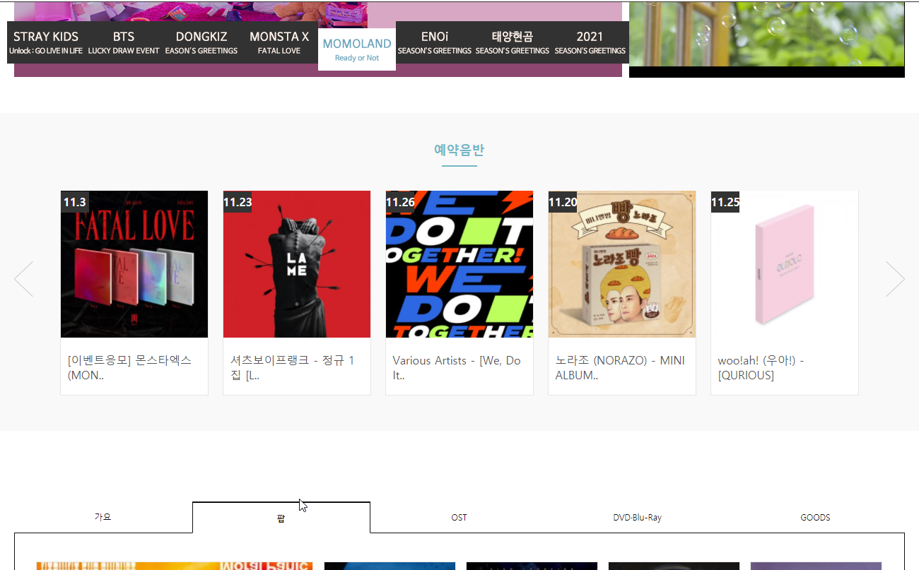 사운드웨이브에서 몬스타엑스, 셔츠보이프랭크, 노라조 등 예약음반 살펴보세요. 트와이스의 앨범도 있네요.