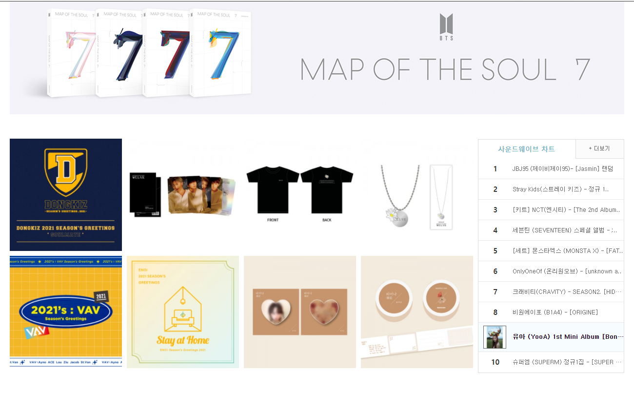 몬스타엑스 2021 시즌 그리팅, 우주소녀 2021 시즌그리팅, 케이윌, 정세운, 에스에프나인 SF9, 엔플라잉, 스트레이 키즈 굿즈 들도 구경해보시기 바랍니다.