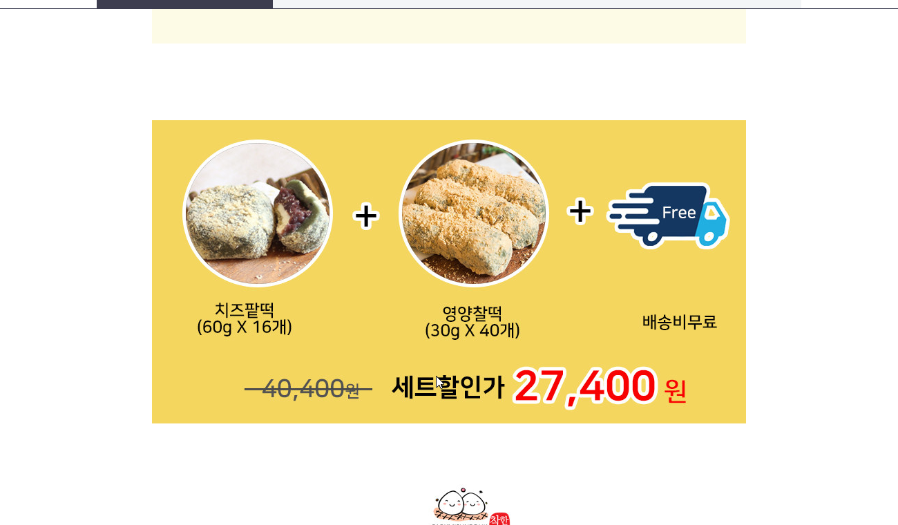 치즈팥떡 16개와 영양찰떡 40개가 배송비 무료로 구매 가능한데요. 세트 가격은 27,400원입니다. 가족 선물로 좋은 것 같습니다. 박미선 떡집에서 선물 구입해보세요.