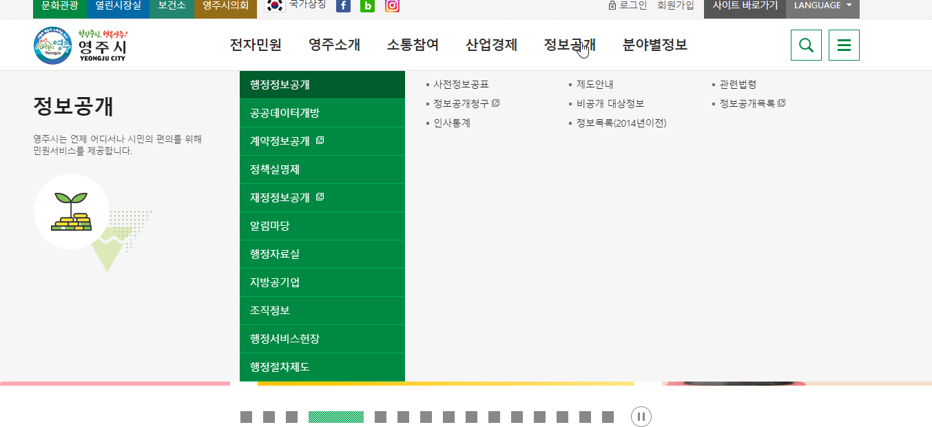 오늘은 일요일!영주시청 홈페이지 방문해보았습니다.