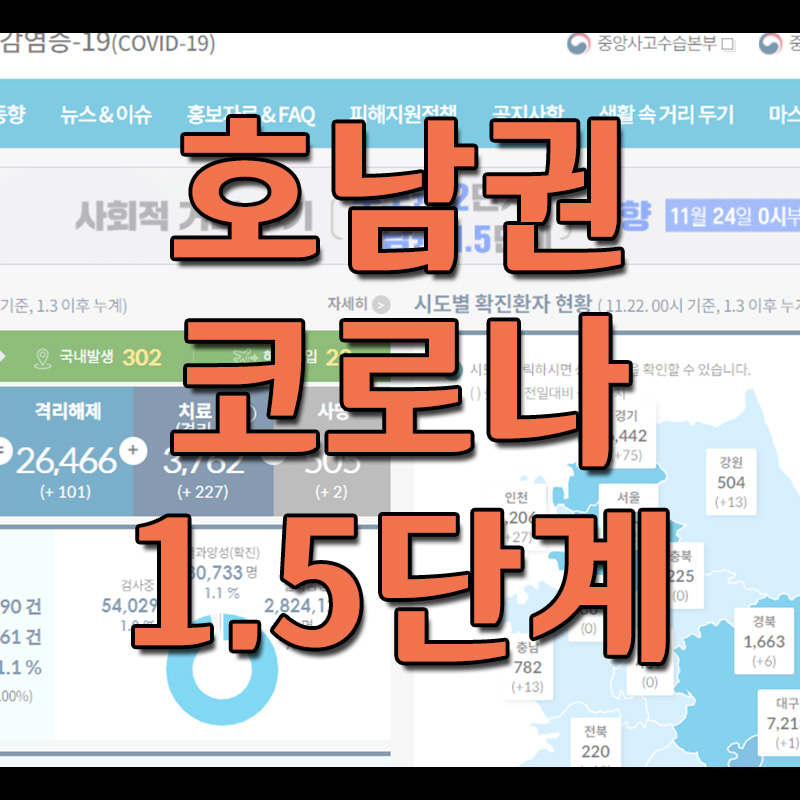 주말도 이제 마무리 되어가는데요. 호남권은 11월 24일 0시부터 코로나 사회적 거리두기가 1.5단계로 격상됩니다. 이에 따라서 철저한 관리가 필요한데요.