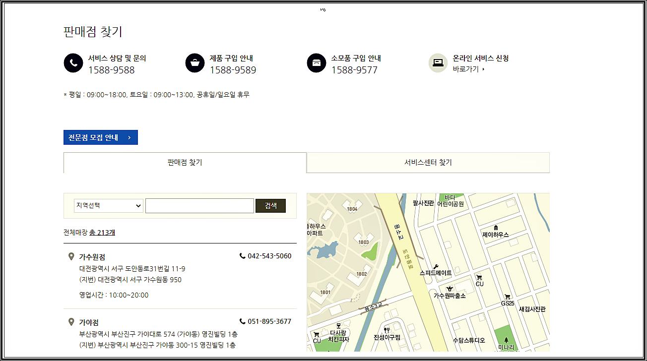 위니아 딤채 홈페이지 방문하시면 판매점을 지도를 통해서 찾아볼 수 있습니다.