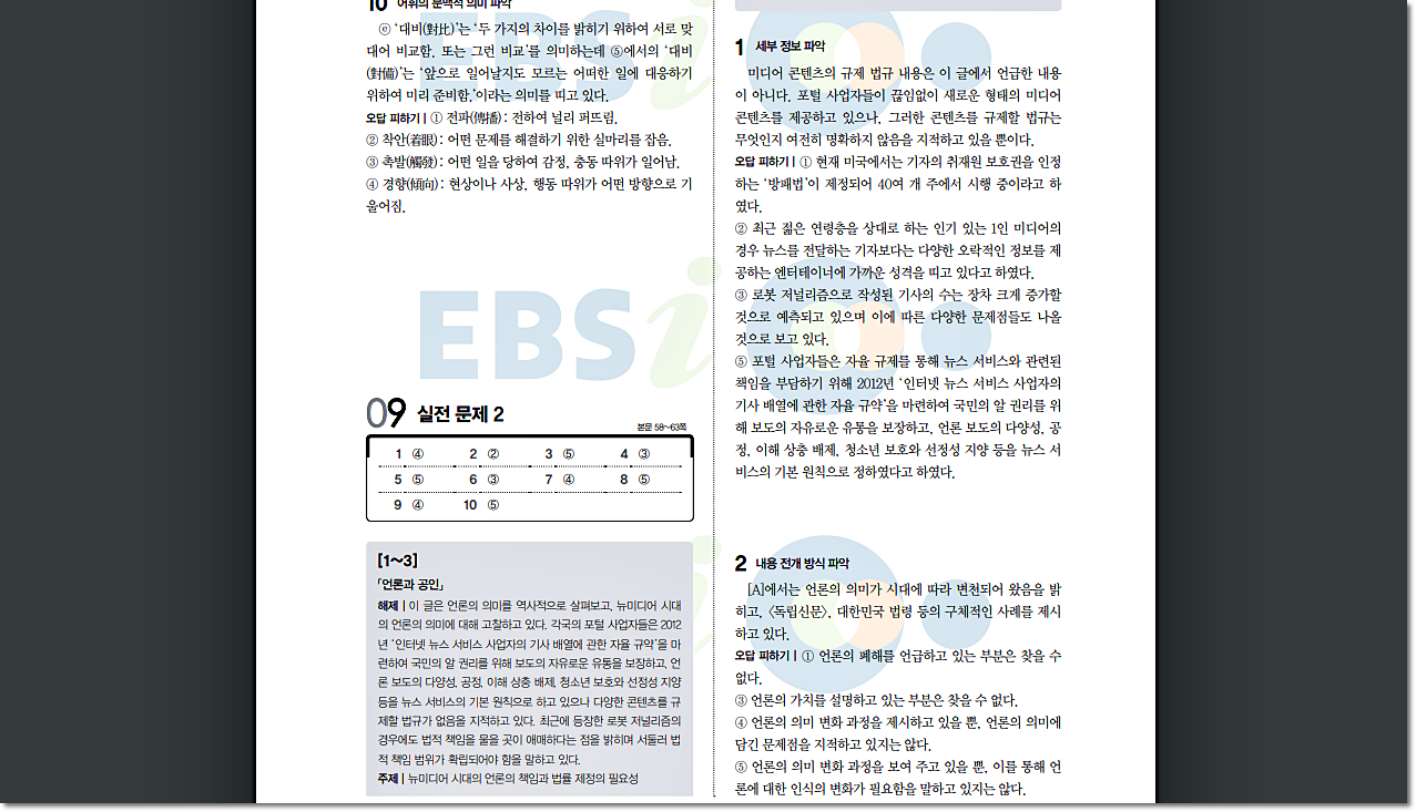 국어영역 독서 답지 다운로드 링크