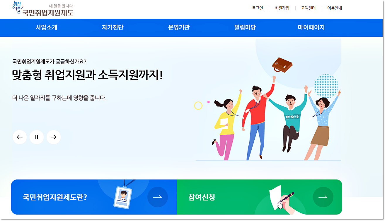 국민취업지원제도 홈페이지 바로가기