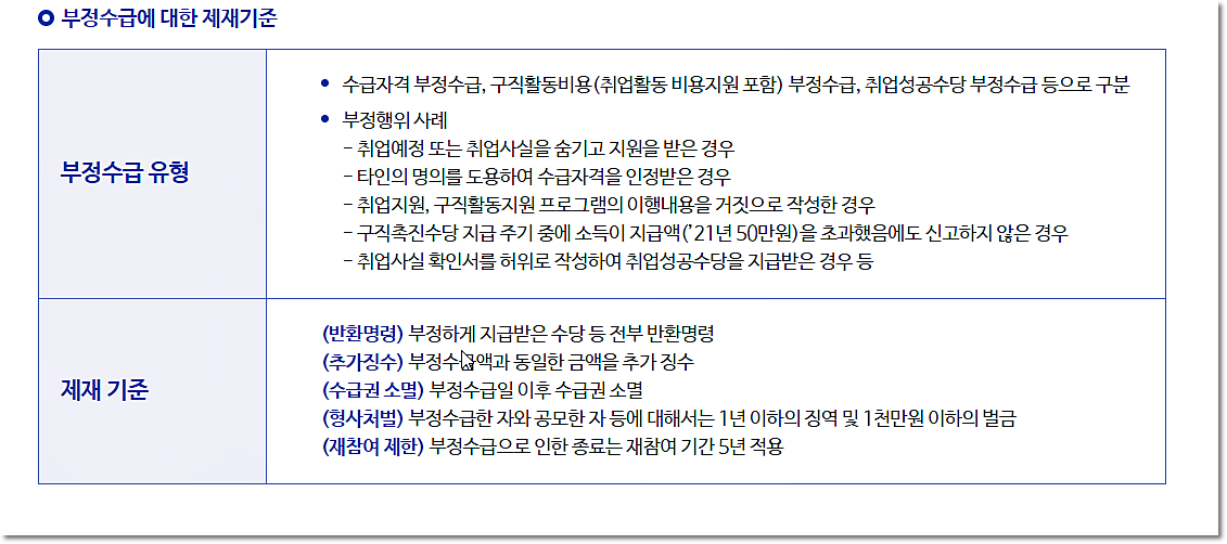 수당 부정수급에 대한 제재기준도 확인하시면 좋을 것 같아요.