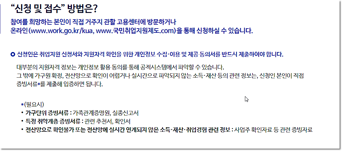 신청은 거주지 관할에 있는 고용센터에 방문해서