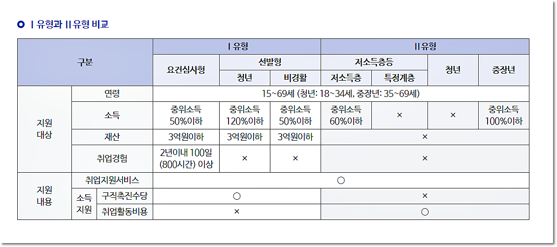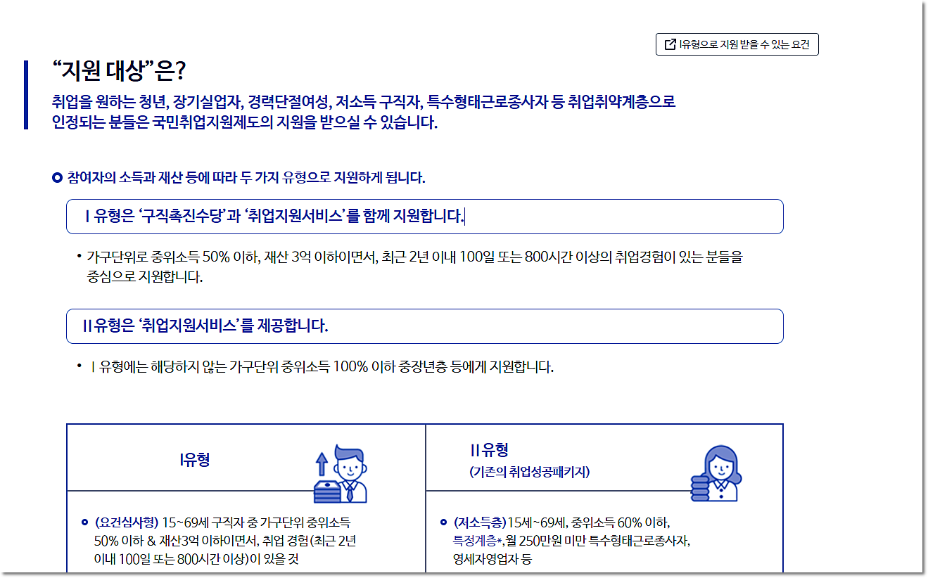 국민취업지원제도의 I 유형과 II 유형