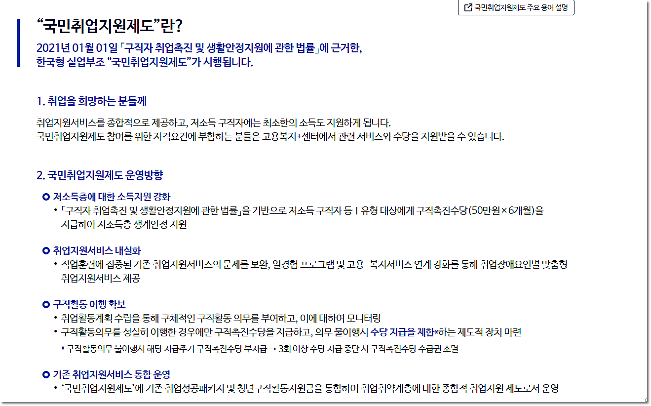 국민취업지원제도에 대한 내용은