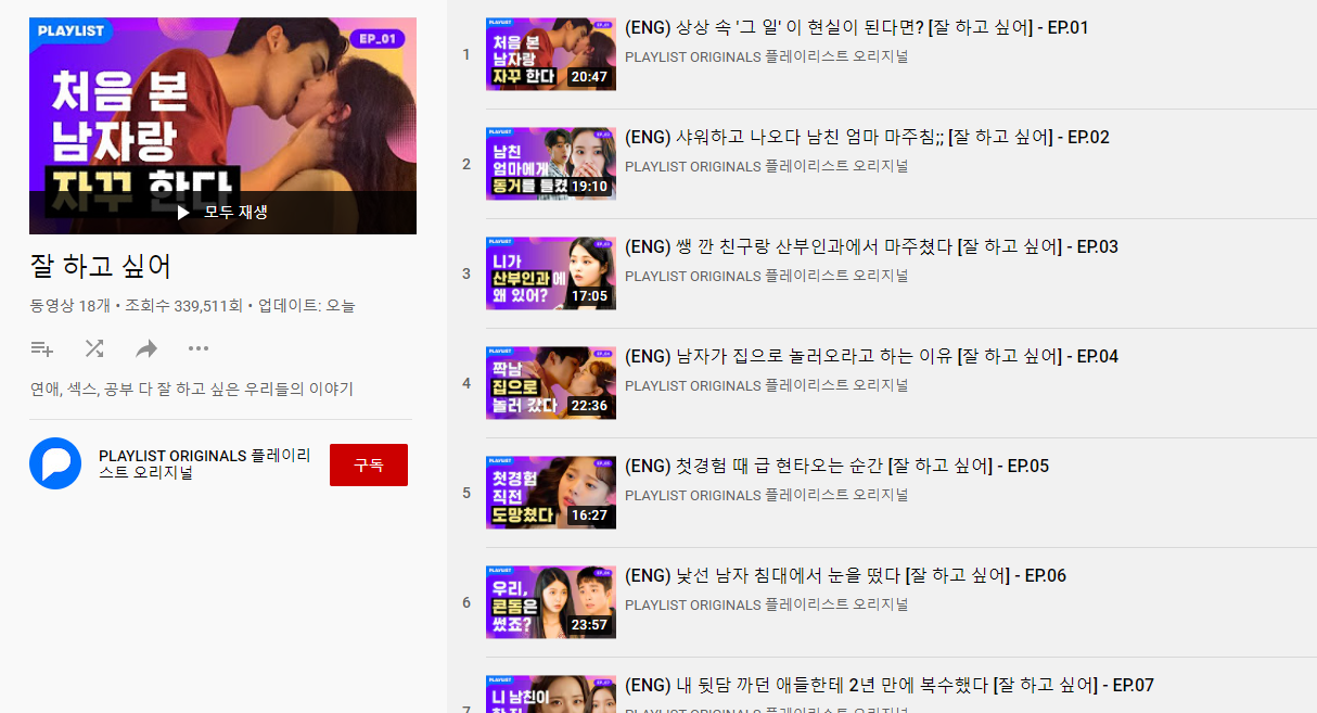 유튜브 채널 플레이리스트에서 볼 수 있는데요.
