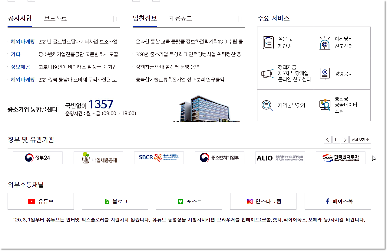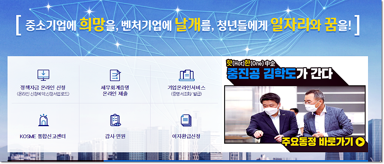 중진공 홈페이지 소개해드릴게요.