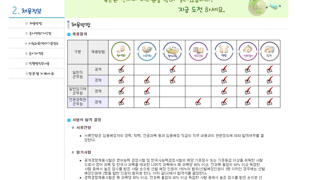 육군 군무원 채용관리 사이트에서는 이렇게 군무원 채용방법, 응시연령, 가산점, 시험과목, 영어기준점수, 응시자격증, 직렬별직무내용, 전문임기제서류 등에 대한 내용을 확인할 수 있습니다.